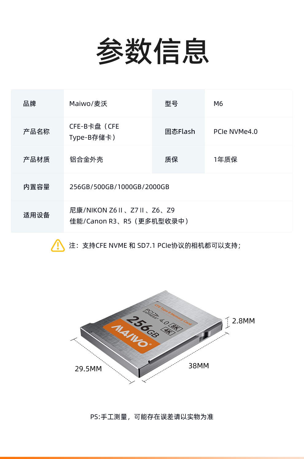 麦沃(MAIWO) M6 CFE Type-B储存卡适用尼康Z6/Z9佳能R3/R5高清8K连拍内存卡