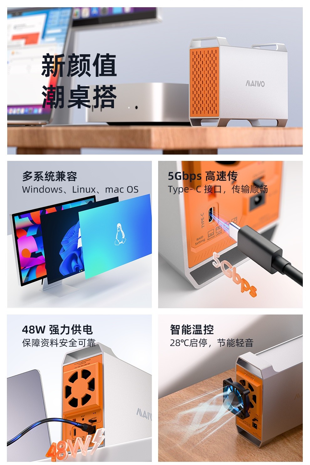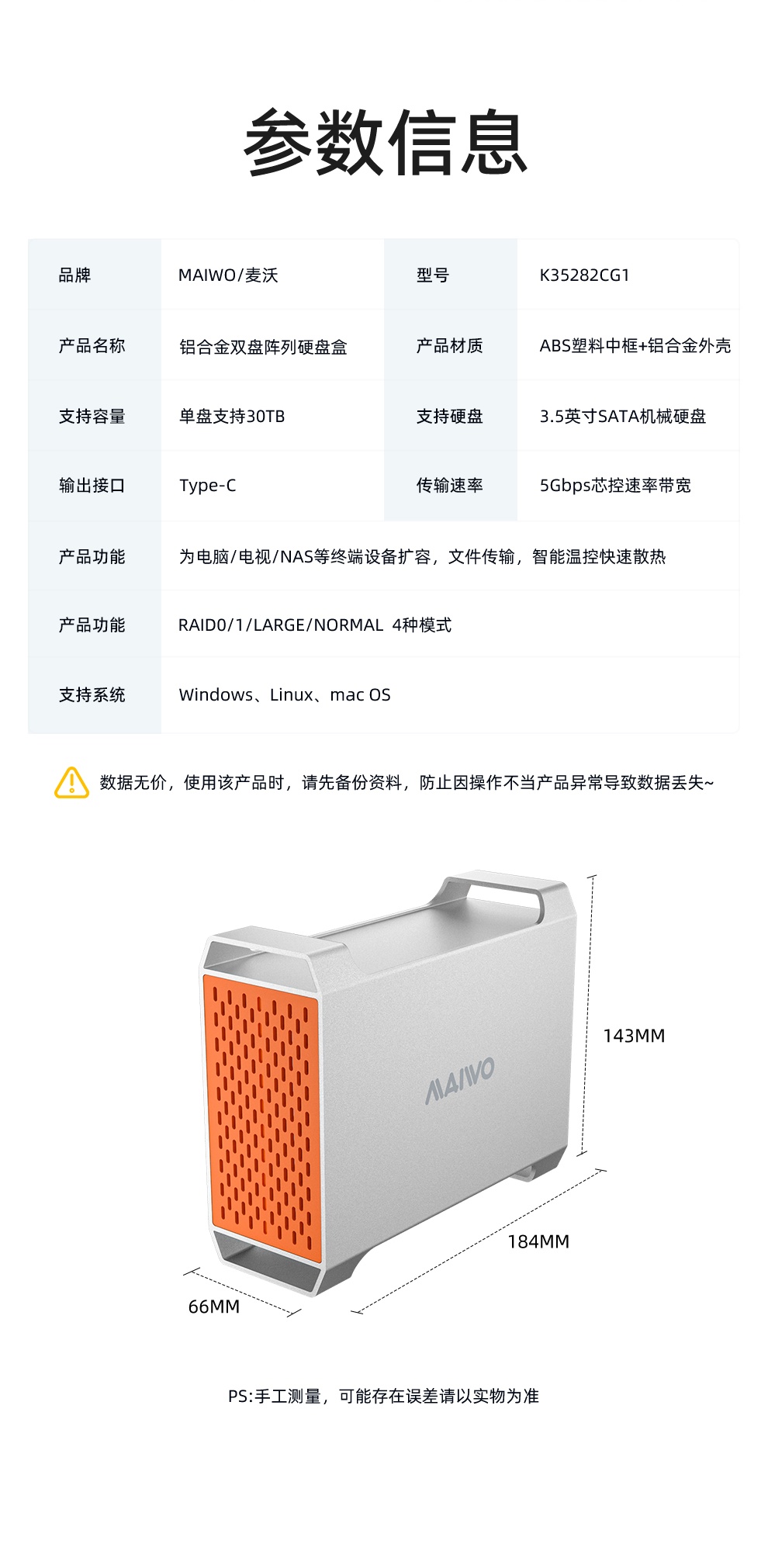 麦沃(MAIWO)3.5英寸硬盘盒阵列柜(带RAID存储)3.5英寸SATA串口机械硬盘温控散热硬盘柜K35282CG1