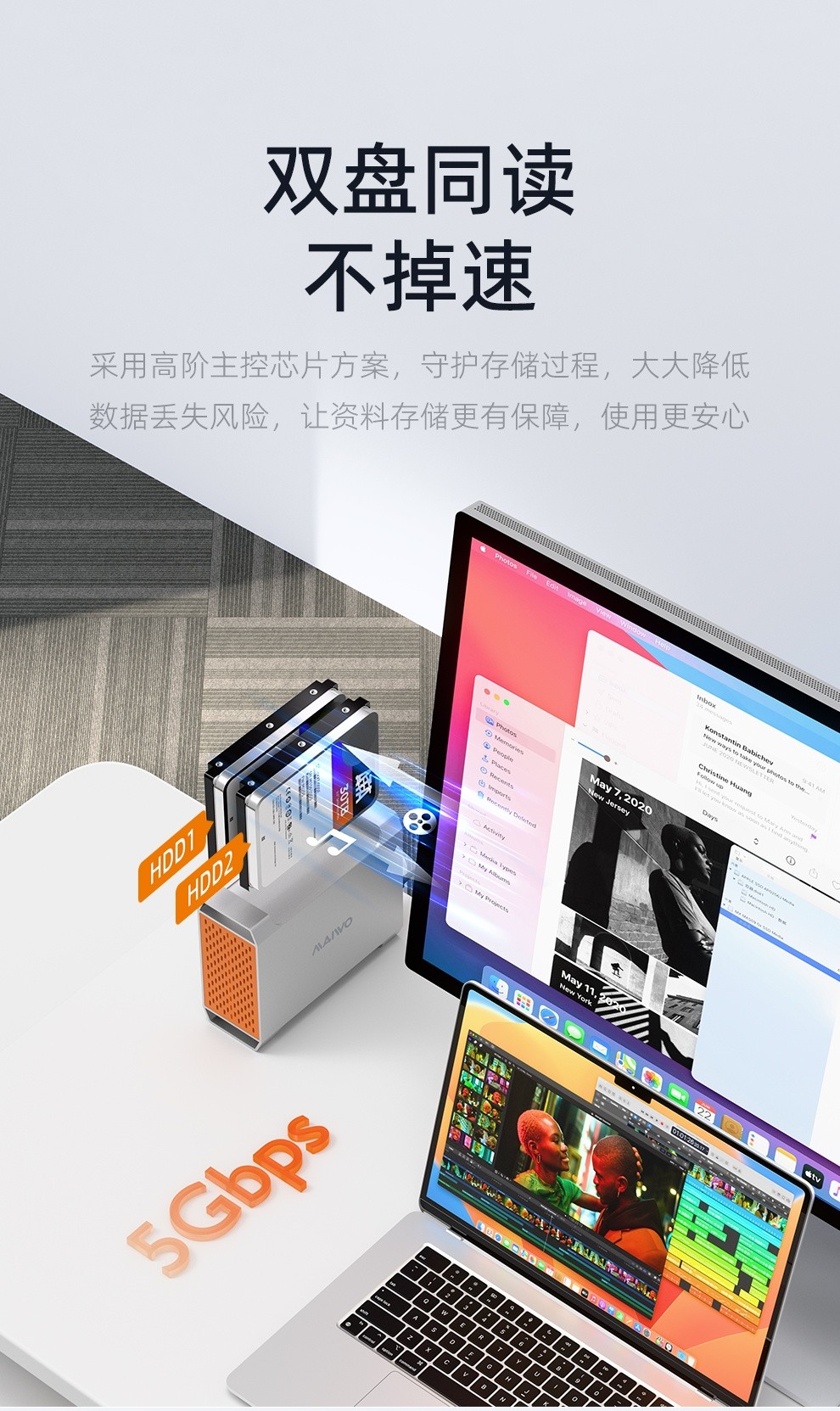 麦沃USB3.0双盘阵列盒raid阵列模式5gbps外置读写硬盘盒K35262U3S