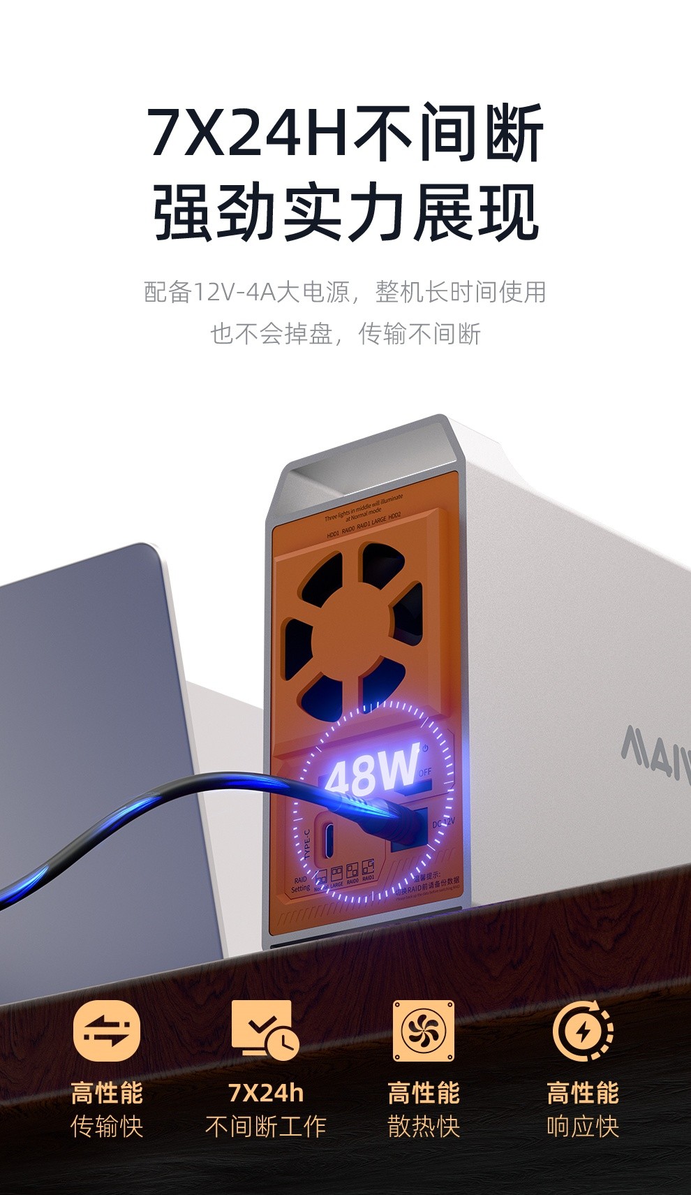 麦沃硬盘盒四盘位2.5/3.5英寸sata固态机械外接盒读取器K305BU3S
