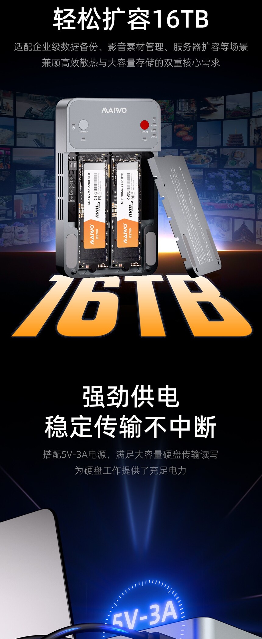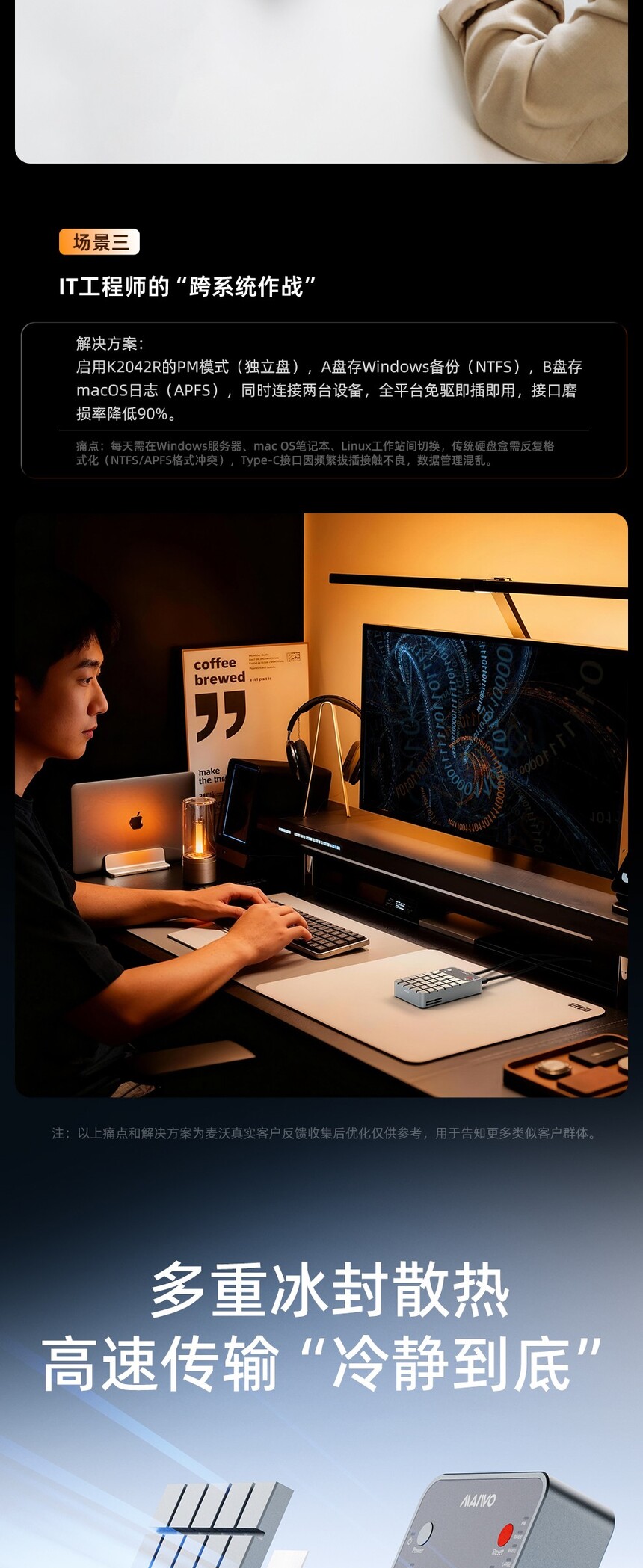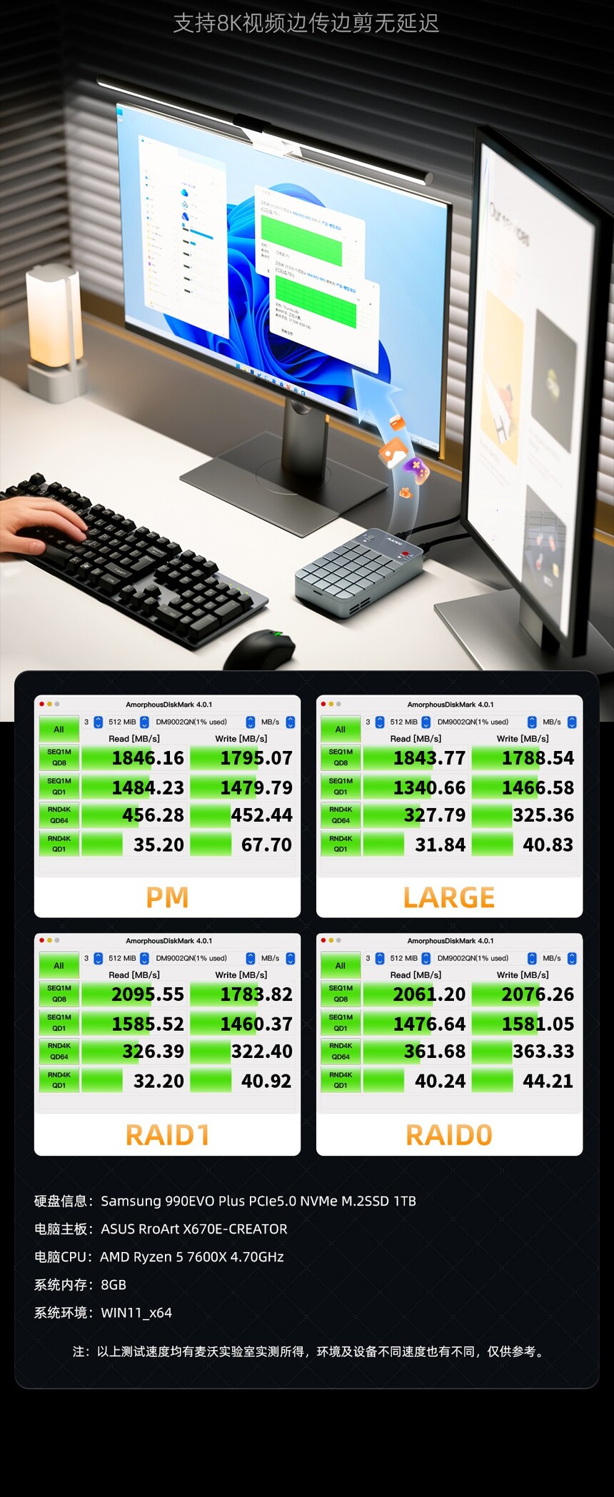 产品功能:组建阵列模式剪辑/集中素材/资料备份,还可为电脑/游戏机/电视/NAS/服务器进行扩容读写;