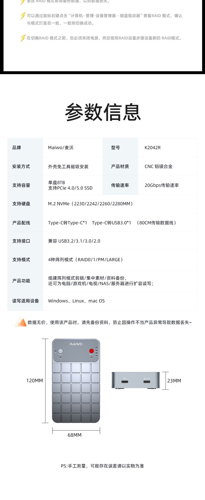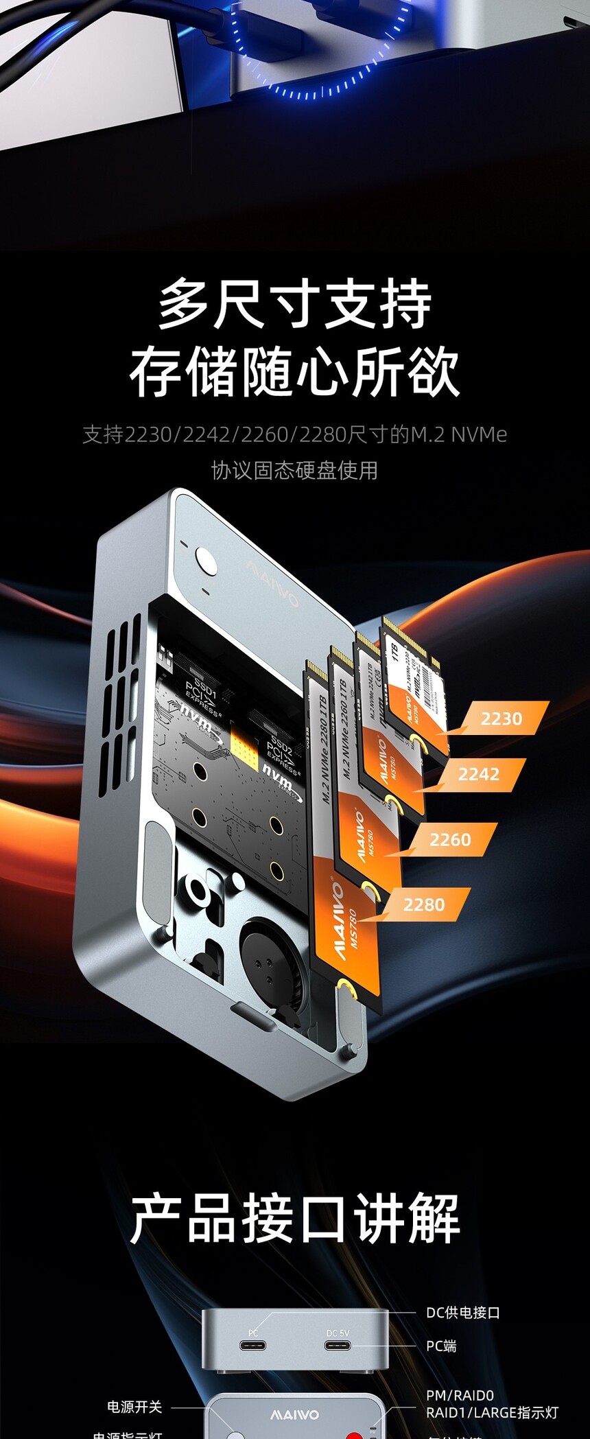 传输接口:兼容USB3.2/3.1/3.0/2.0支持硬盘:M.2 NVME