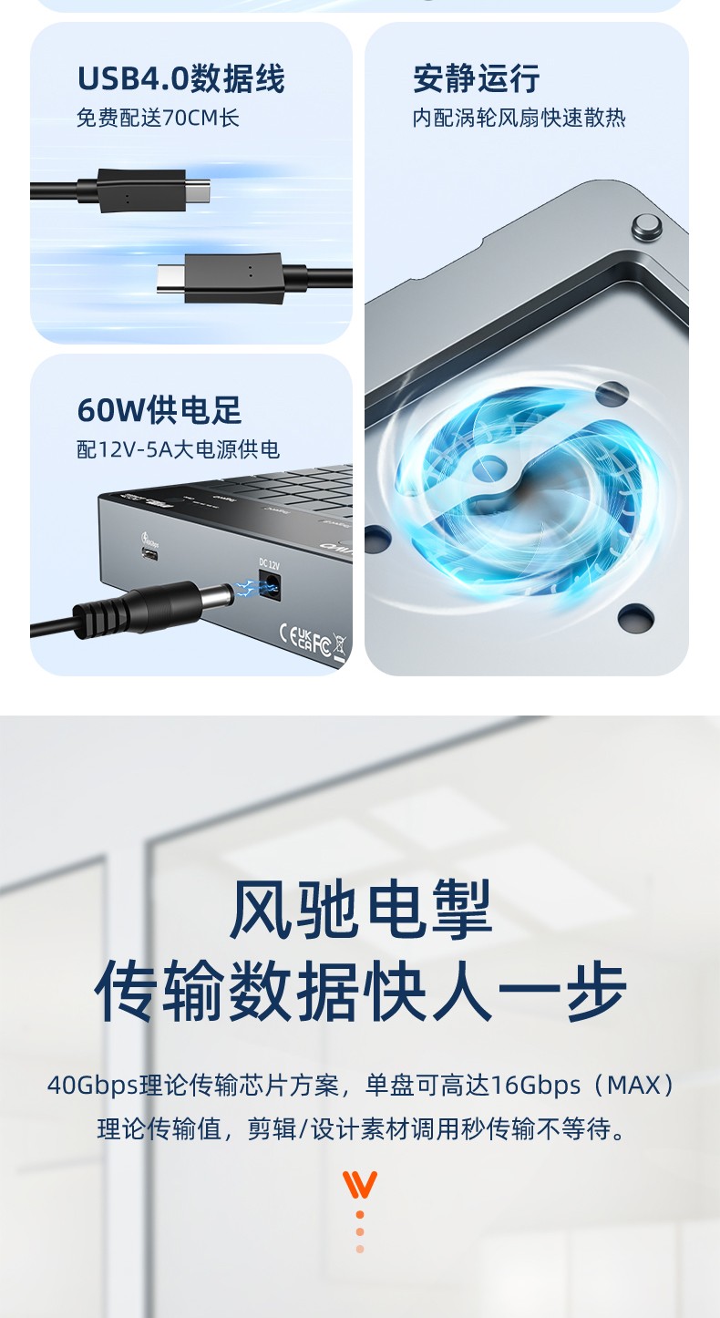 传输接口:USB4.0支持硬盘:M.2 NVMe(M Key)2230/2242/2260/2280MM长度硬盘