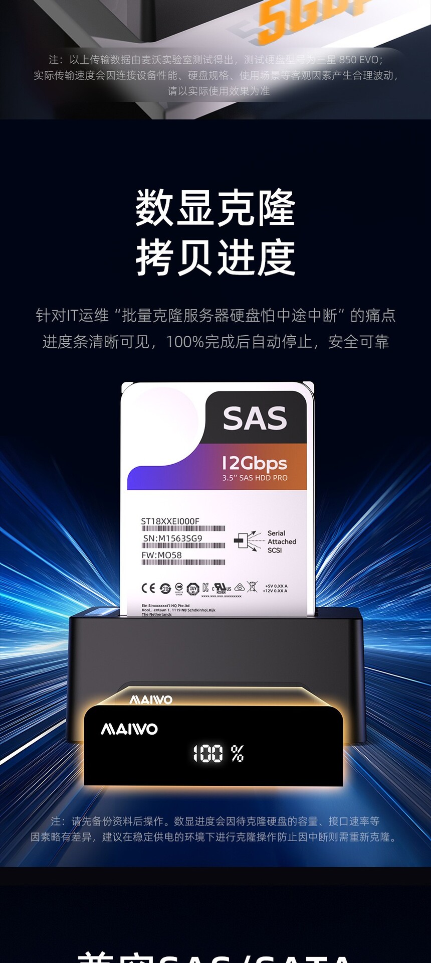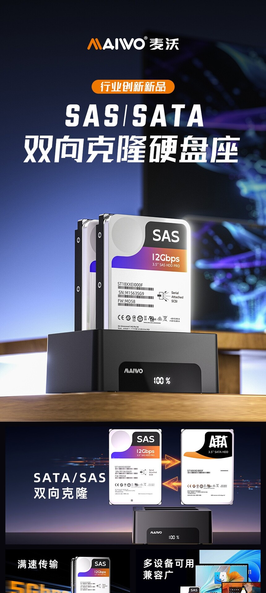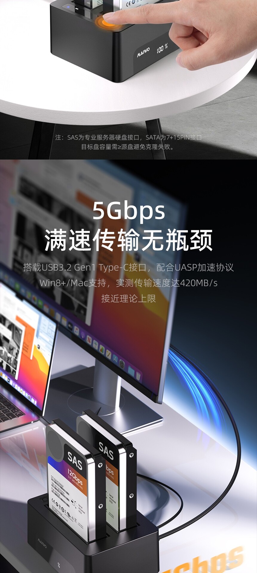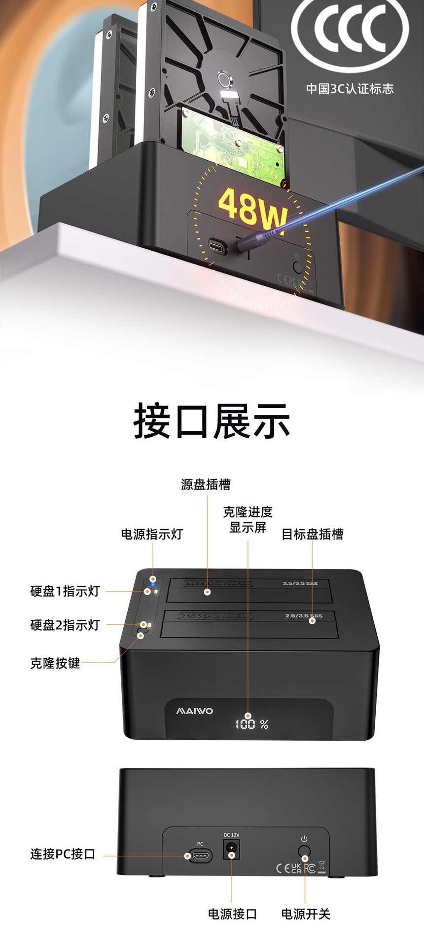 产品功能:联机读写:设备连接电脑即可读写硬盘数据、传输文件及管理存储,即插即用,使用便捷。脱机克隆:无需连接电脑,将源盘数据复制至目标盘,操作简单,克隆过程稳定,不占用主机资源。